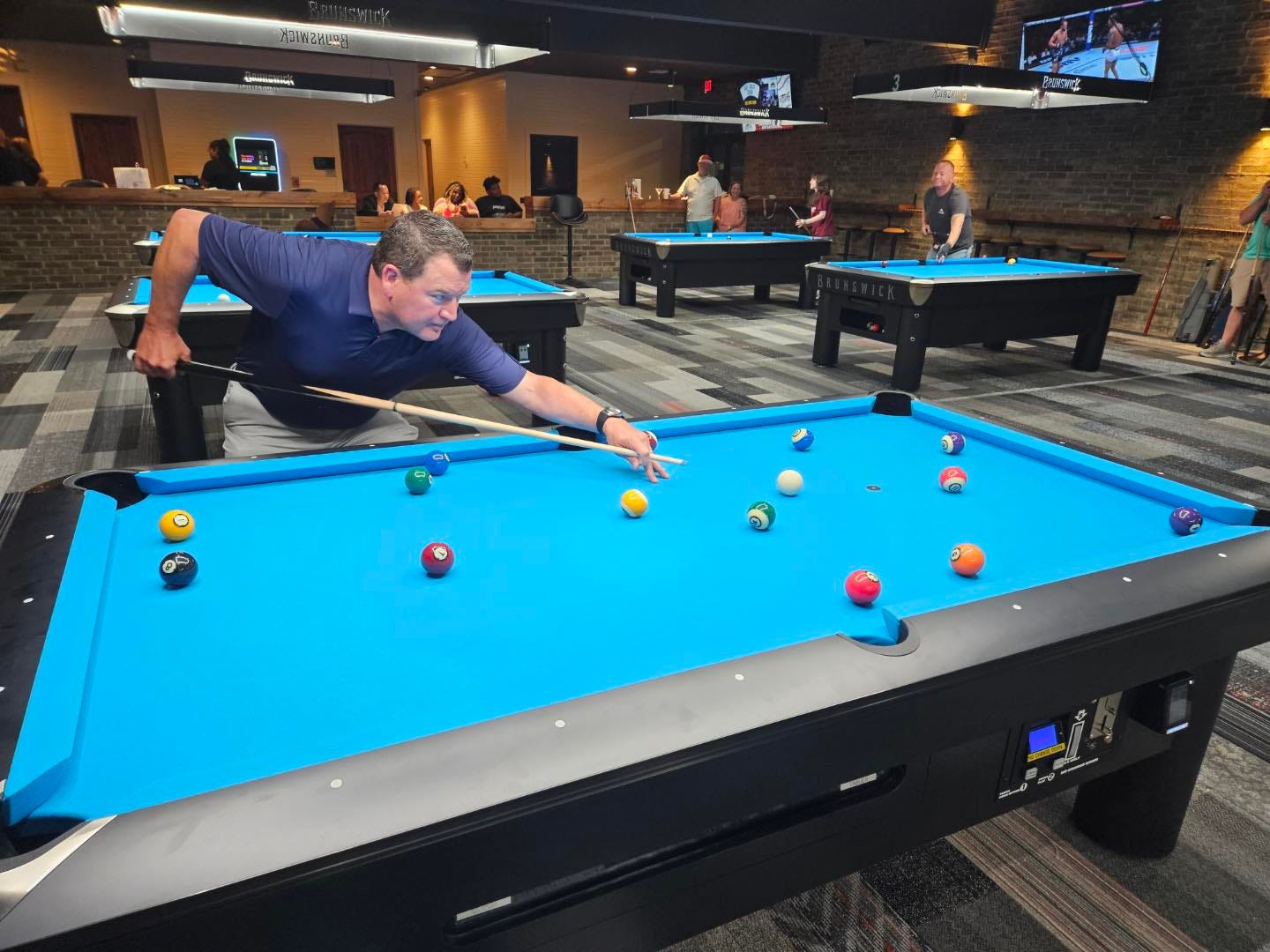 The hall includes 28 Brunswick pool tables.