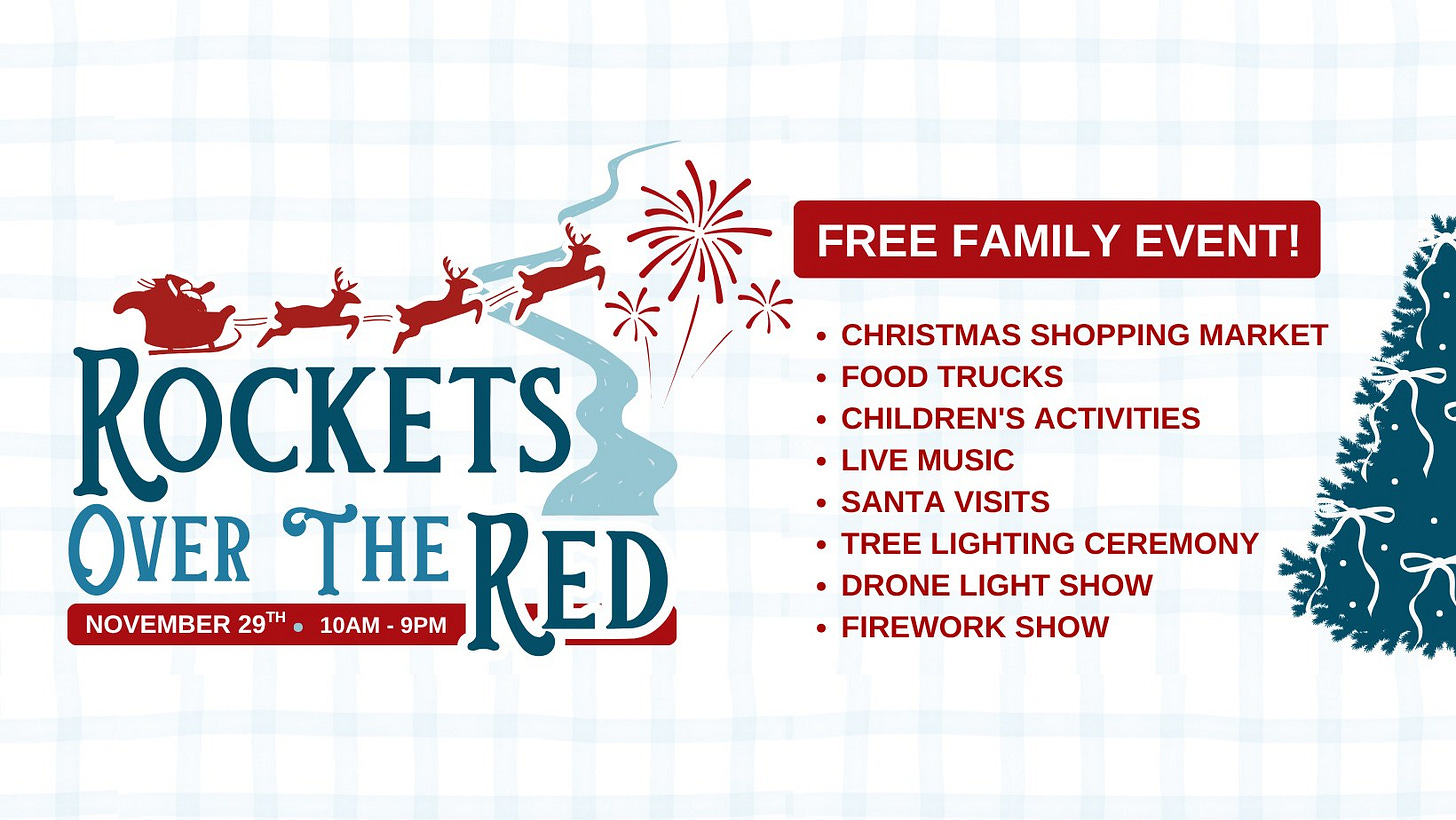 November 29: Rockets Over The Red on both sides of the Red River. Free admission. Drone and fireworks show at 7:15 pm.