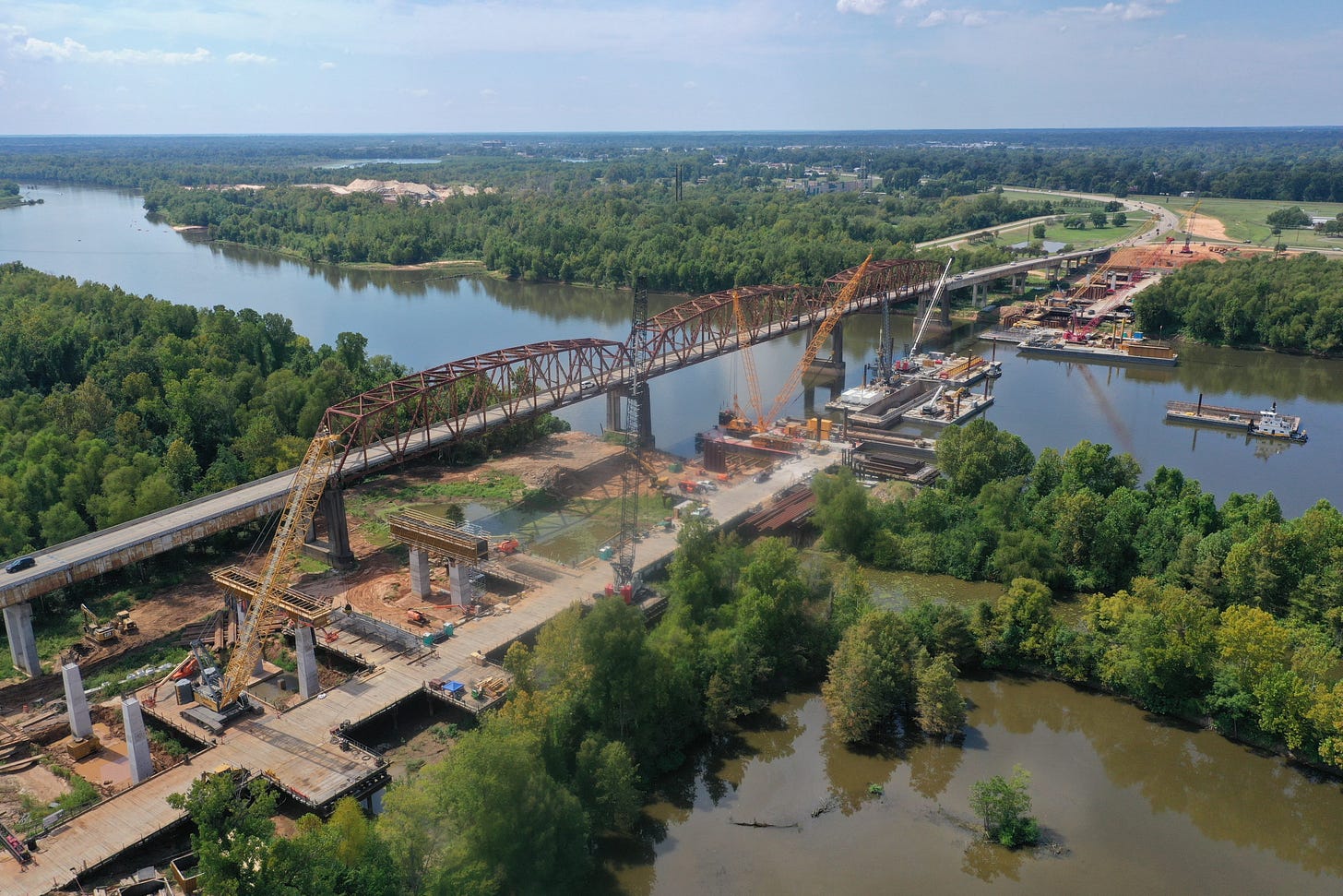 Additionally, the necessary widening and realignment of LA 511 (Jimmie Davis Hwy/E. 70th St.) continues to forge ahead, including construction of the on and off-ramps that will service the new 4-lane structure and provide access to the two parkways on either side of the river.